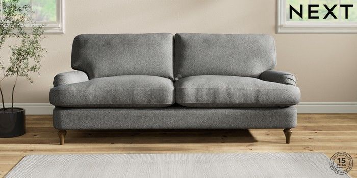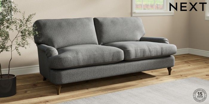7.2.10 Sadie Deep Relaxed Sit 3 Seater Sofa Tweedy Chenille Dark Grey High Slim Turned - Mid | Made Click here to use our website with more accessibility support, for example screen readers