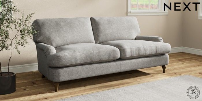 7.2.10 Sadie Deep Relaxed Sit 3 Seater Sofa Tweedy Chenille Mid Grey High Slim Turned - Mid | Made Click here to use our website with more accessibility support, for example screen readers