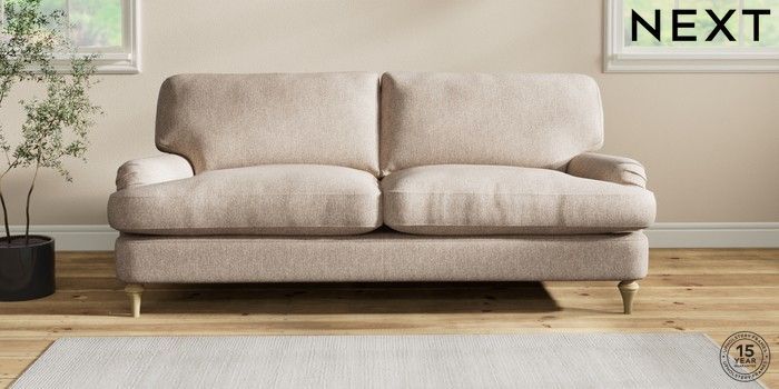 7.2.10 Sadie Deep Relaxed Sit 3 Seater Sofa Tweedy Chenille Mid Natural High Slim Turned - Light | Made Click here to use our website with more accessibility support, for example screen readers