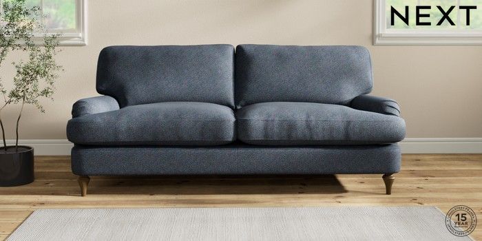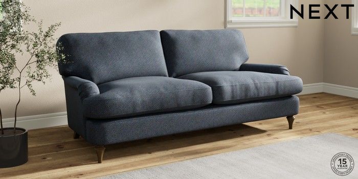 7.2.10 Sadie Deep Relaxed Sit 3 Seater Sofa Tweedy Chenille Navy Blue High Slim Turned - Mid | Made Click here to use our website with more accessibility support, for example screen readers