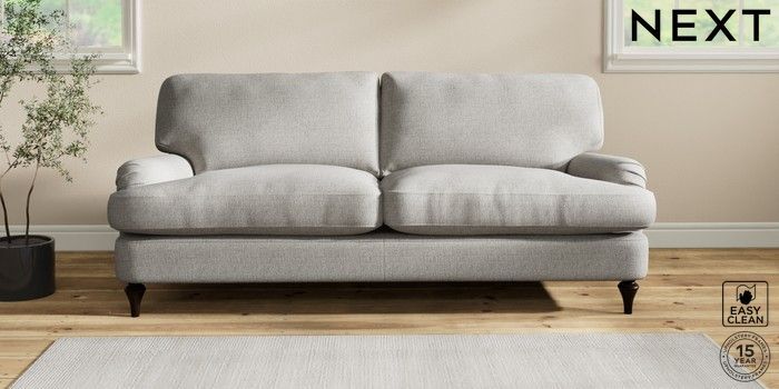 7.2.10 Sadie Deep Relaxed Sit 3 Seater Sofa Woven Chenille Easy Clean Light Grey High Slim Turned - Dark | Made Click here to use our website with more accessibility support, for example screen readers