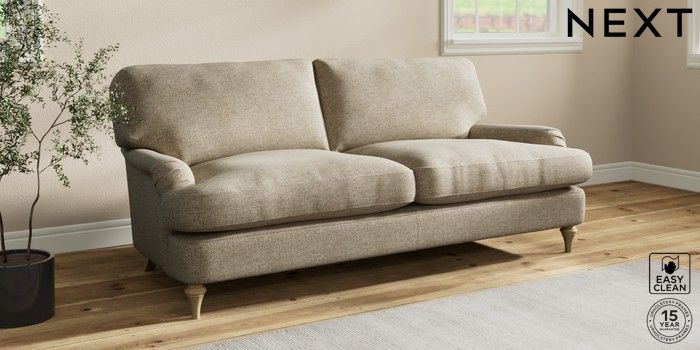 7.2.10 Sadie Deep Relaxed Sit 3 Seater Sofa Woven Chenille Easy Clean Mid Natural High Slim Turned - Light | Made Click here to use our website with more accessibility support, for example screen readers