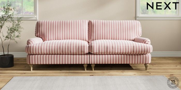 7.2.10 Sadie Deep Relaxed Sit 4 Seater Sofa Bold Chenille Stripe Dark Pink High Slim Turned - Light | Made Click here to use our website with more accessibility support, for example screen readers