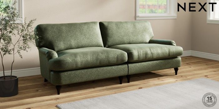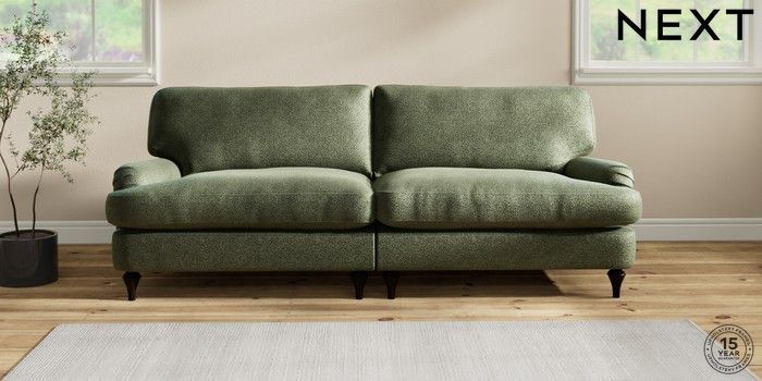 7.2.10 Sadie Deep Relaxed Sit 4 Seater Sofa Boucle Chenille Dark Moss Green High Slim Turned - Dark | Made Click here to use our website with more accessibility support, for example screen readers