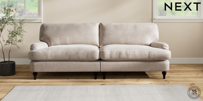7.2.10 Sadie Deep Relaxed Sit 4 Seater Sofa Boucle Chenille Light Natural High Slim Turned - Dark | Made Click here to use our website with more accessibility support, for example screen readers