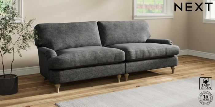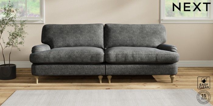 7.2.10 Sadie Deep Relaxed Sit 4 Seater Sofa Boucle Weave Easy Clean Charcoal Grey High Slim Turned - Light | Made Click here to use our website with more accessibility support, for example screen readers