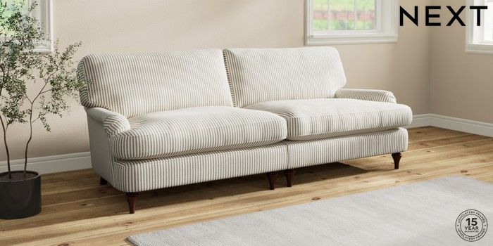 7.2.10 Sadie Deep Relaxed Sit 4 Seater Sofa Chenille Stripe Moss Green High Slim Turned - Dark Brown | Made Click here to use our website with more accessibility support, for example screen readers
