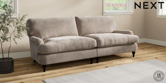 7.2.10 Sadie Deep Relaxed Sit 4 Seater Sofa Chunky Chenille Light Dove High Slim Turned - Dark | Made Click here to use our website with more accessibility support, for example screen readers