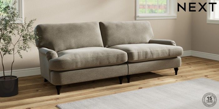7.2.10 Sadie Deep Relaxed Sit 4 Seater Sofa Chunky Marl Light Olive Green High Slim Turned - Dark | Made Click here to use our website with more accessibility support, for example screen readers