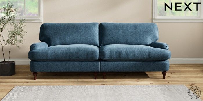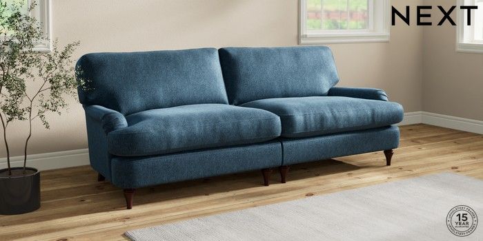 7.2.10 Sadie Deep Relaxed Sit 4 Seater Sofa Cotswold Chenille Dark Blue High Slim Turned - Dark Brown | Made Click here to use our website with more accessibility support, for example screen readers