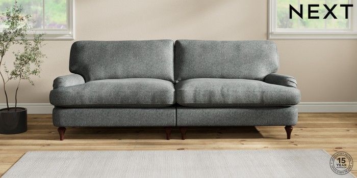7.2.10 Sadie Deep Relaxed Sit 4 Seater Sofa Cotswold Chenille Dark Grey High Slim Turned - Dark Brown | Made Click here to use our website with more accessibility support, for example screen readers