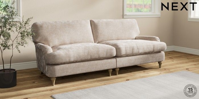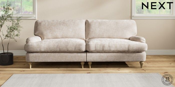7.2.10 Sadie Deep Relaxed Sit 4 Seater Sofa Distressed Velour Mid Natural High Slim Turned - Light | Made Click here to use our website with more accessibility support, for example screen readers