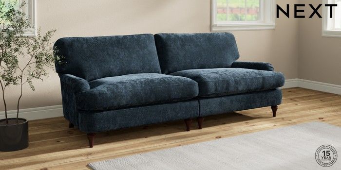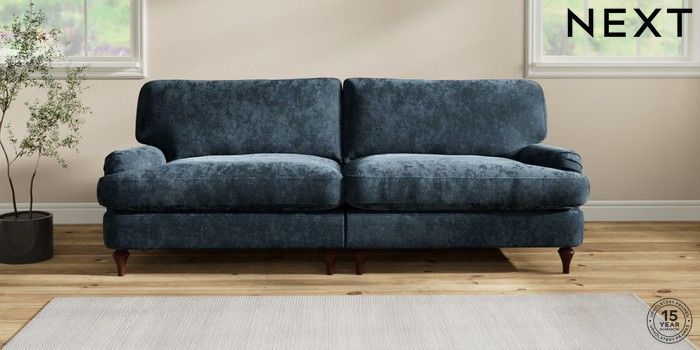 7.2.10 Sadie Deep Relaxed Sit 4 Seater Sofa Distressed Velour Midnight Blue High Slim Turned - Dark Brown | Made Click here to use our website with more accessibility support, for example screen readers