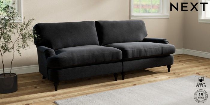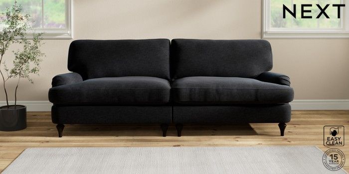 7.2.10 Sadie Deep Relaxed Sit 4 Seater Sofa Fine Chenille Easy Clean Black High Slim Turned - Dark | Made Click here to use our website with more accessibility support, for example screen readers