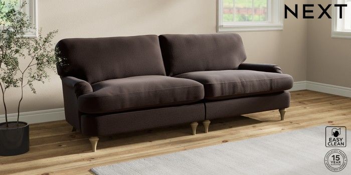 7.2.10 Sadie Deep Relaxed Sit 4 Seater Sofa Fine Chenille Easy Clean Chocolate Brown High Slim Turned - Light | Made Click here to use our website with more accessibility support, for example screen readers