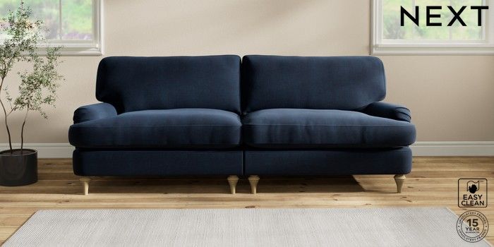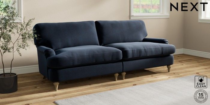 7.2.10 Sadie Deep Relaxed Sit 4 Seater Sofa Fine Chenille Easy Clean Dark Navy Blue High Slim Turned - Light | Made Click here to use our website with more accessibility support, for example screen readers