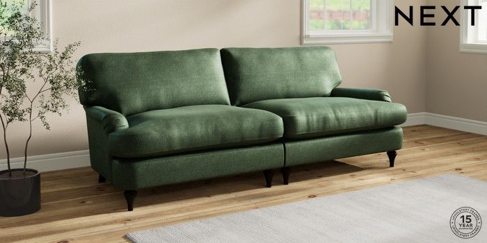 7.2.10 Sadie Deep Relaxed Sit 4 Seater Sofa Luxe Chenille Dark Green High Slim Turned - Dark | Made Click here to use our website with more accessibility support, for example screen readers