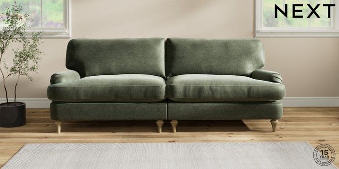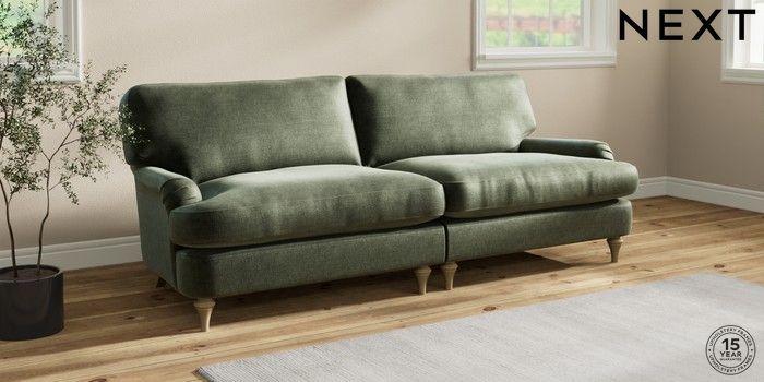 7.2.10 Sadie Deep Relaxed Sit 4 Seater Sofa Luxe Chenille Mid Green High Slim Turned - Light | Made Click here to use our website with more accessibility support, for example screen readers