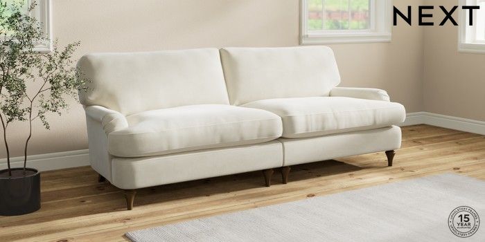 7.2.10 Sadie Deep Relaxed Sit 4 Seater Sofa Luxe Chenille Oyster High Slim Turned - Mid | Made Click here to use our website with more accessibility support, for example screen readers