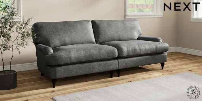 7.2.10 Sadie Deep Relaxed Sit 4 Seater Sofa Plush Chenille Dark Grey High Slim Turned - Dark | Made Click here to use our website with more accessibility support, for example screen readers