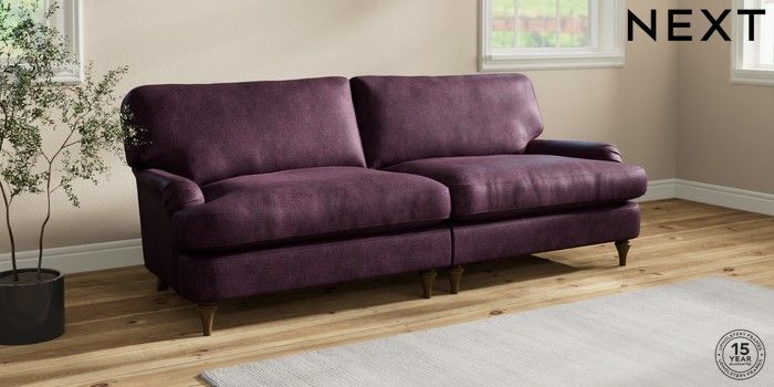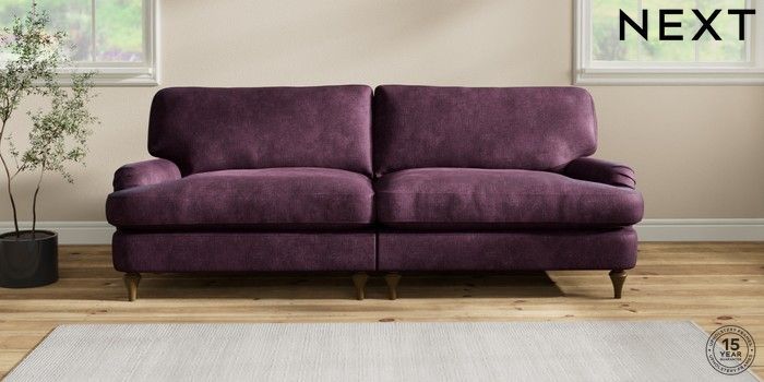 7.2.10 Sadie Deep Relaxed Sit 4 Seater Sofa Plush Chenille Dark Plum Purple High Slim Turned - Mid | Made Click here to use our website with more accessibility support, for example screen readers