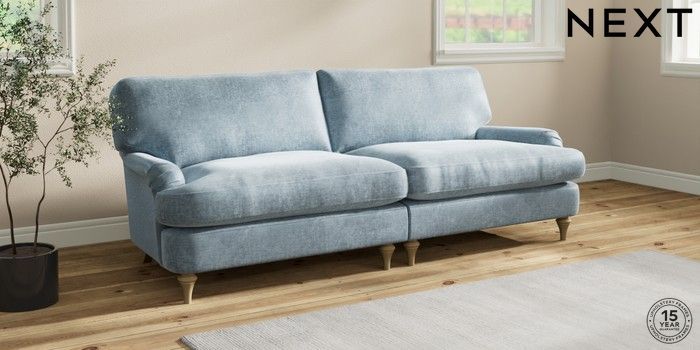 7.2.10 Sadie Deep Relaxed Sit 4 Seater Sofa Plush Chenille Light Blue High Slim Turned - Light | Made Click here to use our website with more accessibility support, for example screen readers
