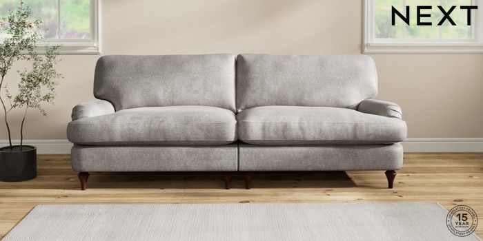 7.2.10 Sadie Deep Relaxed Sit 4 Seater Sofa Plush Chenille Light Grey High Slim Turned - Dark Brown | Made Click here to use our website with more accessibility support, for example screen readers