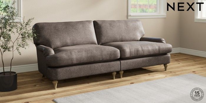 7.2.10 Sadie Deep Relaxed Sit 4 Seater Sofa Plush Chenille Mink Brown High Slim Turned - Light | Made Click here to use our website with more accessibility support, for example screen readers