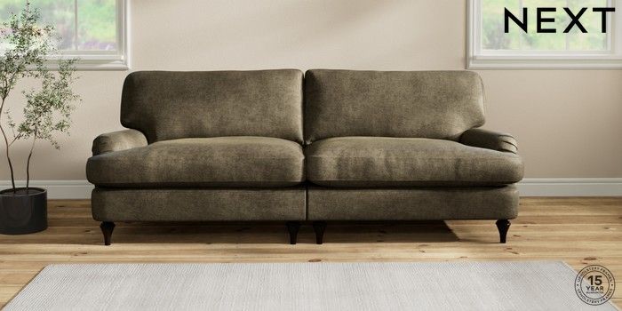 7.2.10 Sadie Deep Relaxed Sit 4 Seater Sofa Plush Chenille Moss Green High Slim Turned - Dark | Made Click here to use our website with more accessibility support, for example screen readers