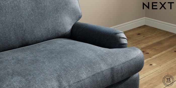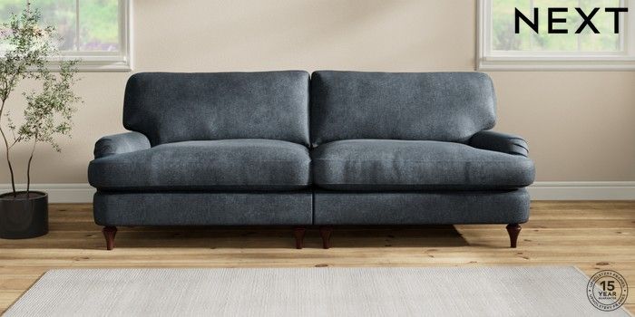 7.2.10 Sadie Deep Relaxed Sit 4 Seater Sofa Plush Chenille Slate Blue High Slim Turned - Dark Brown | Made Click here to use our website with more accessibility support, for example screen readers