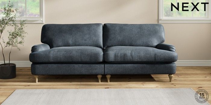 7.2.10 Sadie Deep Relaxed Sit 4 Seater Sofa Plush Chenille Slate Blue High Slim Turned - Light | Made Click here to use our website with more accessibility support, for example screen readers