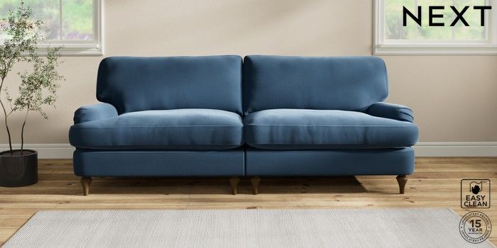 7.2.10 Sadie Deep Relaxed Sit 4 Seater Sofa Plush Velvet Easy Clean Airforce Blue High Slim Turned - Mid | Made Click here to use our website with more accessibility support, for example screen readers