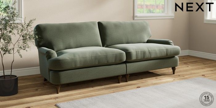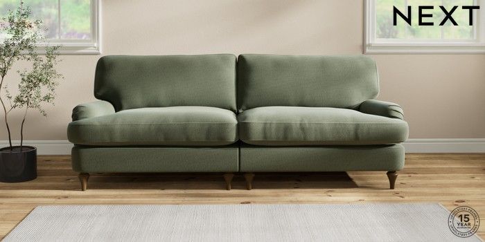 7.2.10 Sadie Deep Relaxed Sit 4 Seater Sofa Relaxed Linen Look Dark Green High Slim Turned - Mid | Made Click here to use our website with more accessibility support, for example screen readers