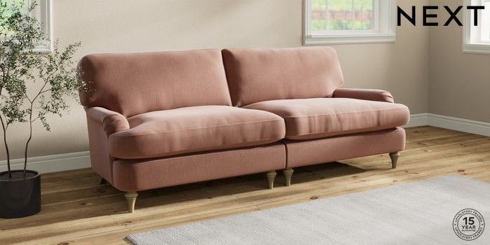 7.2.10 Sadie Deep Relaxed Sit 4 Seater Sofa Relaxed Linen Look Light Rust Brown High Slim Turned - Light | Made Click here to use our website with more accessibility support, for example screen readers