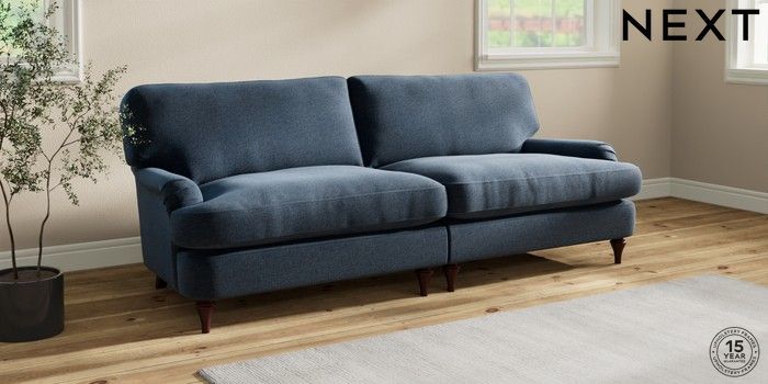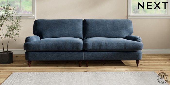 7.2.10 Sadie Deep Relaxed Sit 4 Seater Sofa Ripple Chenille Dark Blue High Slim Turned - Dark Brown | Made Click here to use our website with more accessibility support, for example screen readers