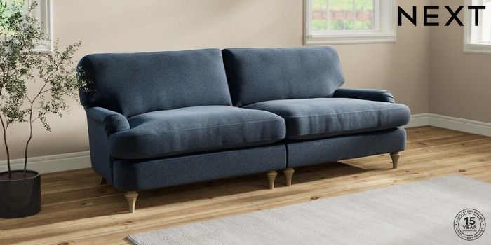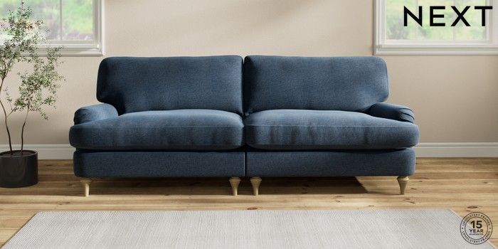 7.2.10 Sadie Deep Relaxed Sit 4 Seater Sofa Ripple Chenille Dark Blue High Slim Turned - Light | Made Click here to use our website with more accessibility support, for example screen readers