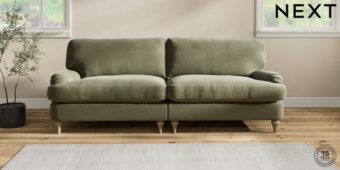 7.2.10 Sadie Deep Relaxed Sit 4 Seater Sofa Ripple Chenille Mid Moss Green High Slim Turned - Light | Made Click here to use our website with more accessibility support, for example screen readers