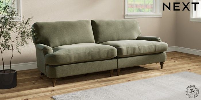 7.2.10 Sadie Deep Relaxed Sit 4 Seater Sofa Ripple Chenille Mid Moss Green High Slim Turned - Mid | Made Click here to use our website with more accessibility support, for example screen readers