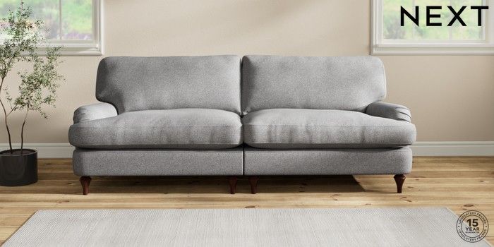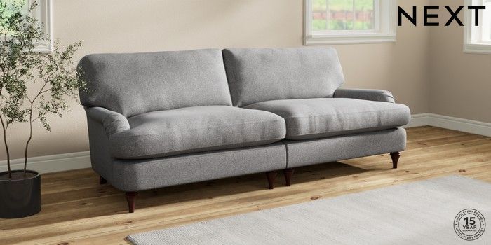 7.2.10 Sadie Deep Relaxed Sit 4 Seater Sofa Studio Chenille Mid Grey High Slim Turned - Dark Brown | Made Click here to use our website with more accessibility support, for example screen readers