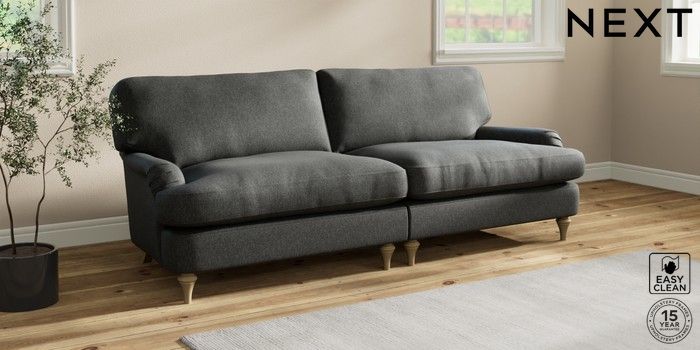 7.2.10 Sadie Deep Relaxed Sit 4 Seater Sofa Tweedy Blend Easy Clean Charcoal Grey High Slim Turned - Light | Made Click here to use our website with more accessibility support, for example screen readers