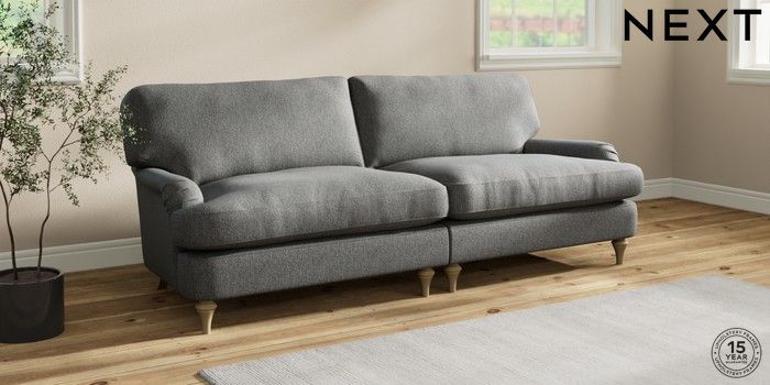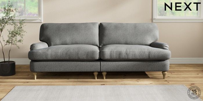7.2.10 Sadie Deep Relaxed Sit 4 Seater Sofa Tweedy Chenille Dark Grey High Slim Turned - Light | Made Click here to use our website with more accessibility support, for example screen readers