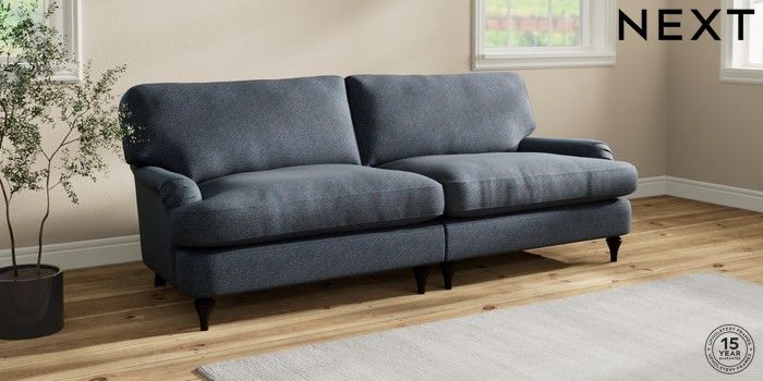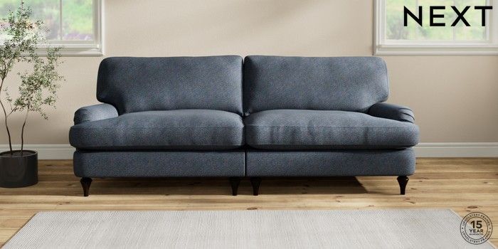 7.2.10 Sadie Deep Relaxed Sit 4 Seater Sofa Tweedy Chenille Navy Blue High Slim Turned - Dark | Made Click here to use our website with more accessibility support, for example screen readers