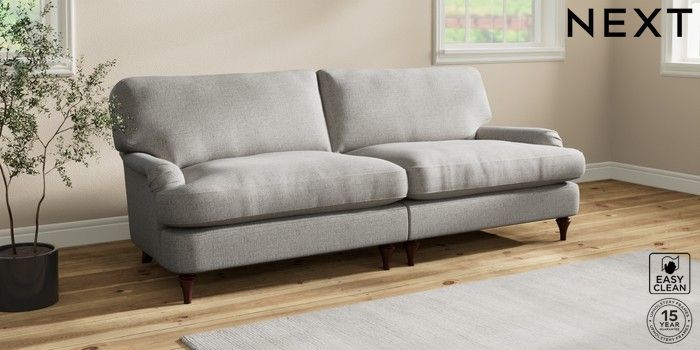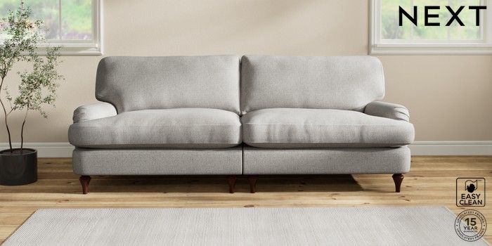 7.2.10 Sadie Deep Relaxed Sit 4 Seater Sofa Woven Chenille Easy Clean Light Grey High Slim Turned - Dark Brown | Made Click here to use our website with more accessibility support, for example screen readers