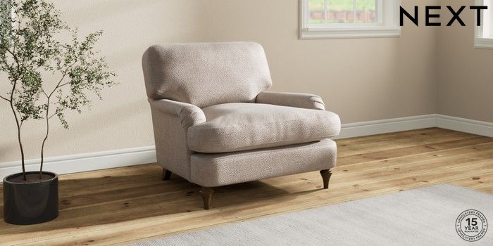 7.2.10 Sadie Deep Relaxed Sit Armchair Boucle Chenille Light Natural High Slim Turned - Mid | Made Click here to use our website with more accessibility support, for example screen readers