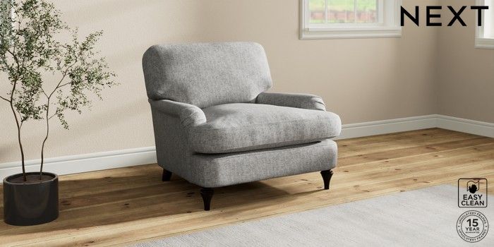 7.2.10 Sadie Deep Relaxed Sit Armchair Chunky Boucle Easy Clean Light Grey High Slim Turned - Dark | Made Click here to use our website with more accessibility support, for example screen readers
