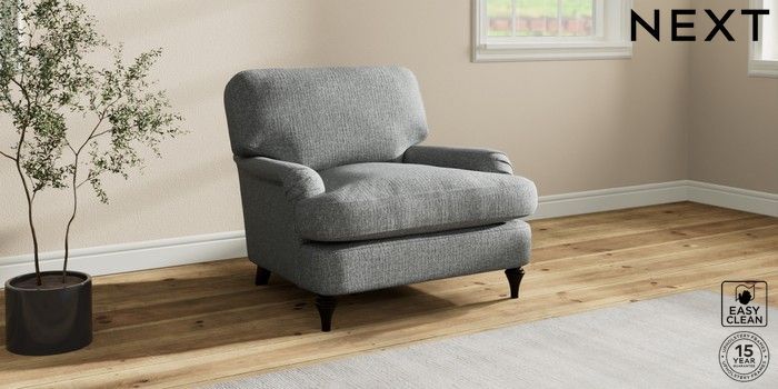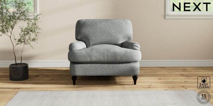7.2.10 Sadie Deep Relaxed Sit Armchair Chunky Boucle Easy Clean Mid Grey High Slim Turned - Dark | Made Click here to use our website with more accessibility support, for example screen readers