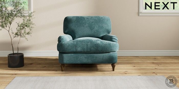 7.2.10 Sadie Deep Relaxed Sit Armchair Chunky Chenille Mid Teal Green High Slim Turned - Mid | Made Click here to use our website with more accessibility support, for example screen readers