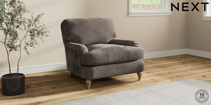 7.2.10 Sadie Deep Relaxed Sit Armchair Chunky Chenille Mink Brown High Slim Turned - Light | Made Click here to use our website with more accessibility support, for example screen readers