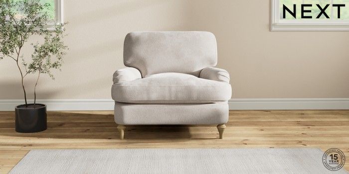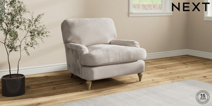 7.2.10 Sadie Deep Relaxed Sit Armchair Chunky Chenille Oyster High Slim Turned - Light | Made Click here to use our website with more accessibility support, for example screen readers
