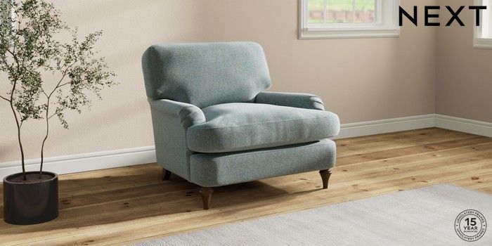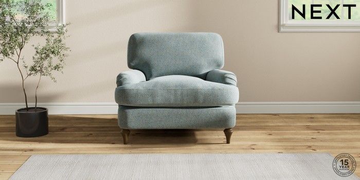 7.2.10 Sadie Deep Relaxed Sit Armchair Chunky Marl Mid Blue High Slim Turned - Mid | Made Click here to use our website with more accessibility support, for example screen readers